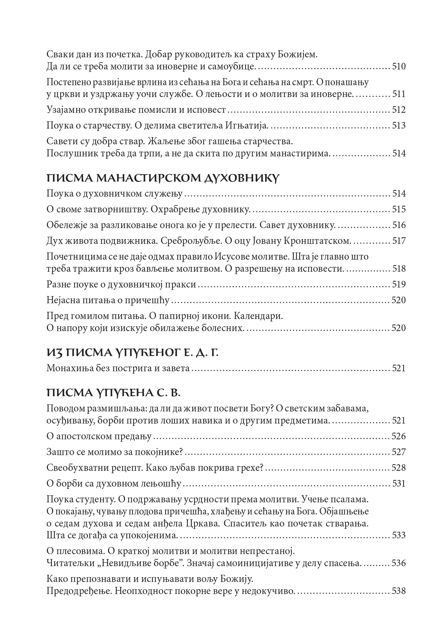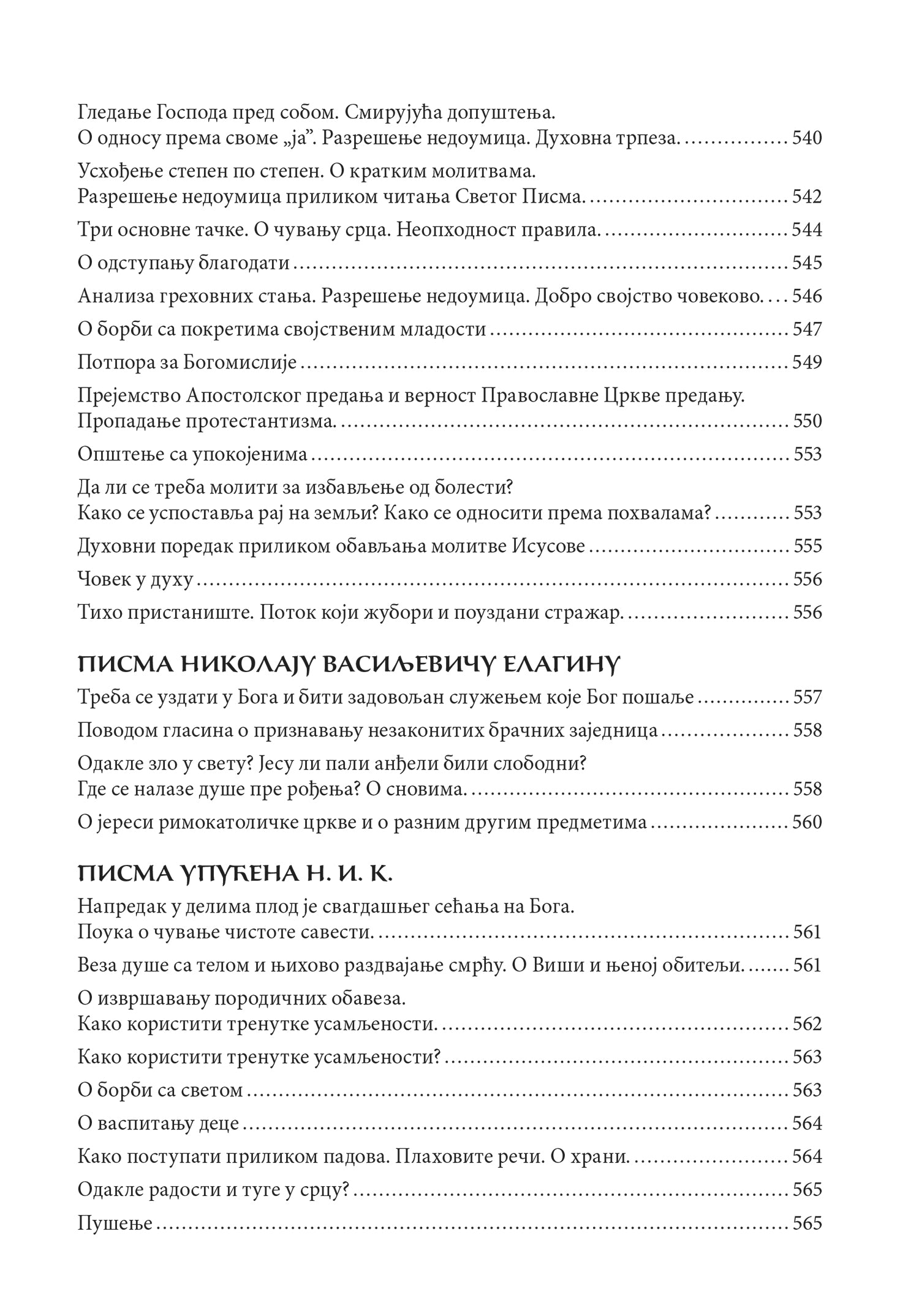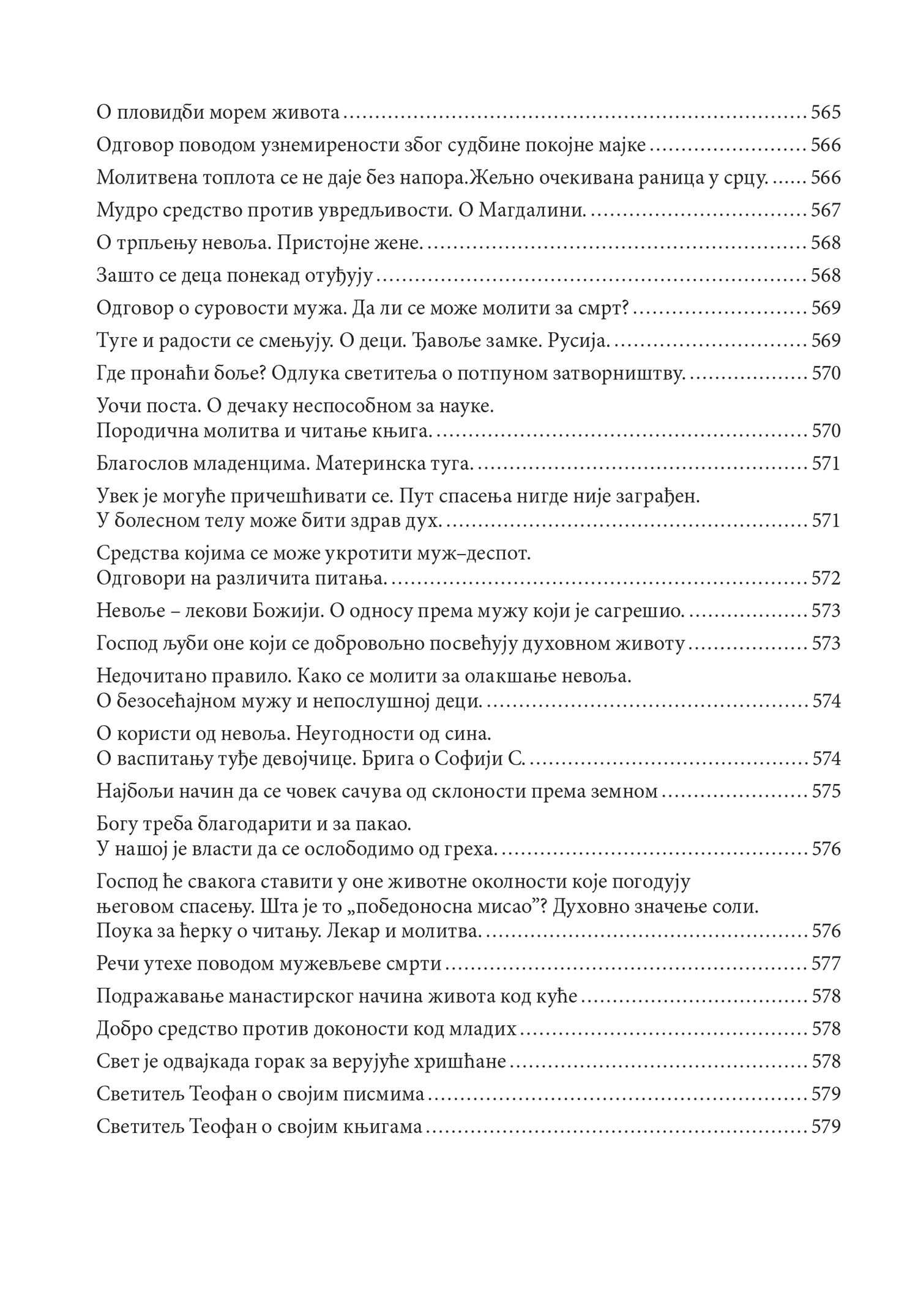 - Primate duhovne savete u obliku pisama i propovedi Svetog Teofana, kao i uputstva za svakodnevni život;