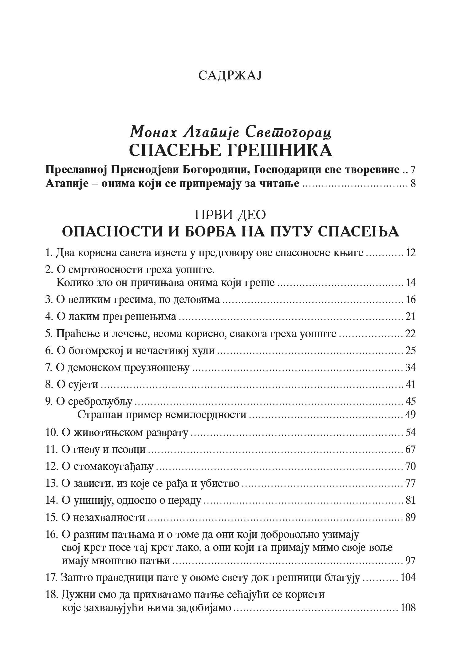Ova izuzetno obimna i duhovno snažna knjiga predstavlja jedan od najpotpunijih pravoslavnih priručnika za razumevanje greha, pokajanja, duhovne borbe i sticanja vrlina, kakav se retko sreće u savremenoj literaturi. Pisao ju je monah Agapije Svetogorac – čovek duboke vere, koji čitaoca strpljivo i jasno uvodi u sve one nevidljive procese duše, borbe i iskušenja kroz koje čovek prolazi na putu spasenja.