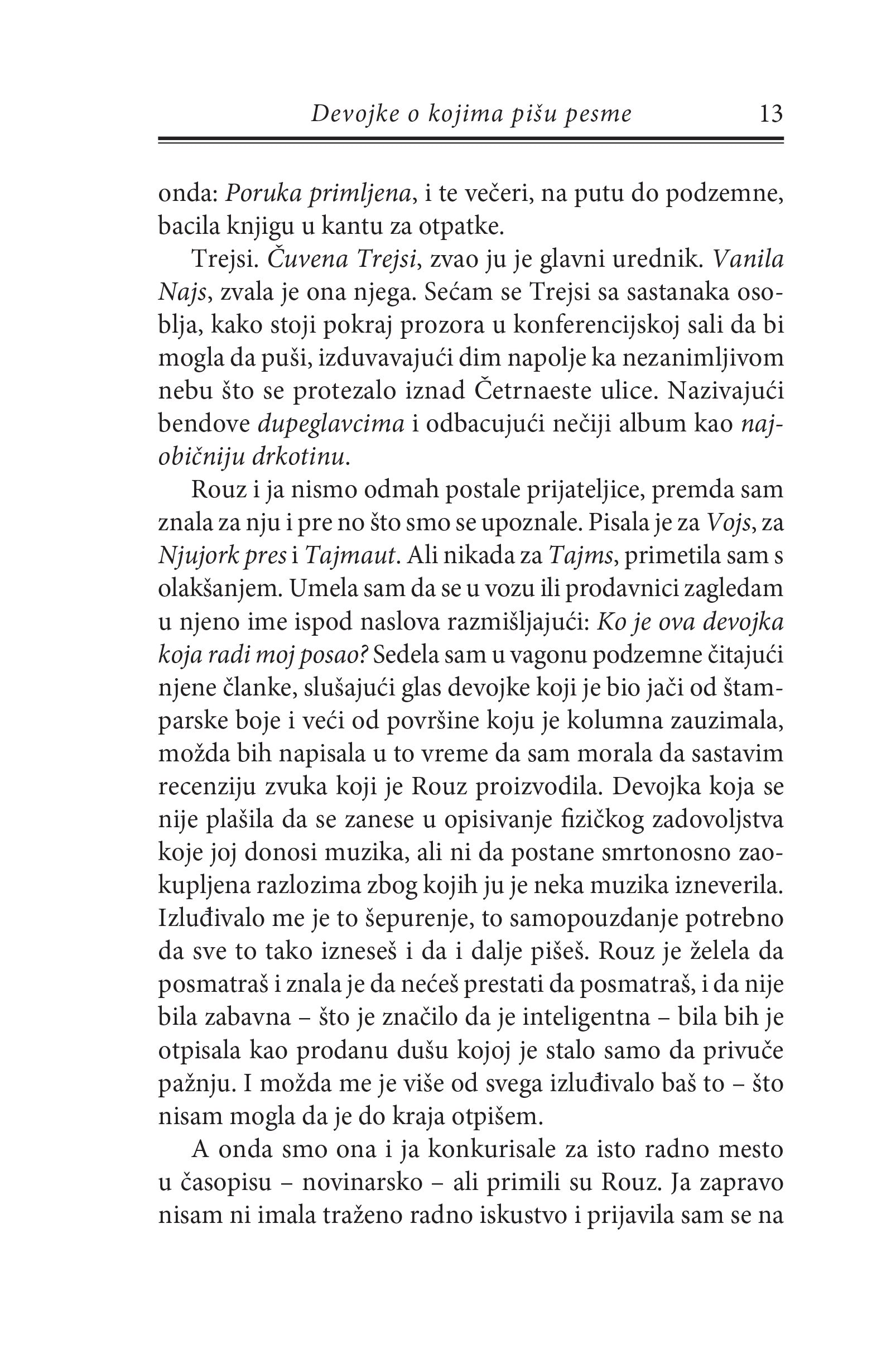 Radnja romana smeštena je u Njujork, 1997. godine. Rouz – smela, cinična i sigurna u svoje ambicije – i Šarlot – tiha, zamišljena i rastrzana između želja i očekivanja – sreću se u redakciji muzičkog časopisa. Njihovo prijateljstvo počinje kao savez, a pretvara se u neraskidivu, ali i bolnu vezu koja oblikuje sve što jesu i što će postati.