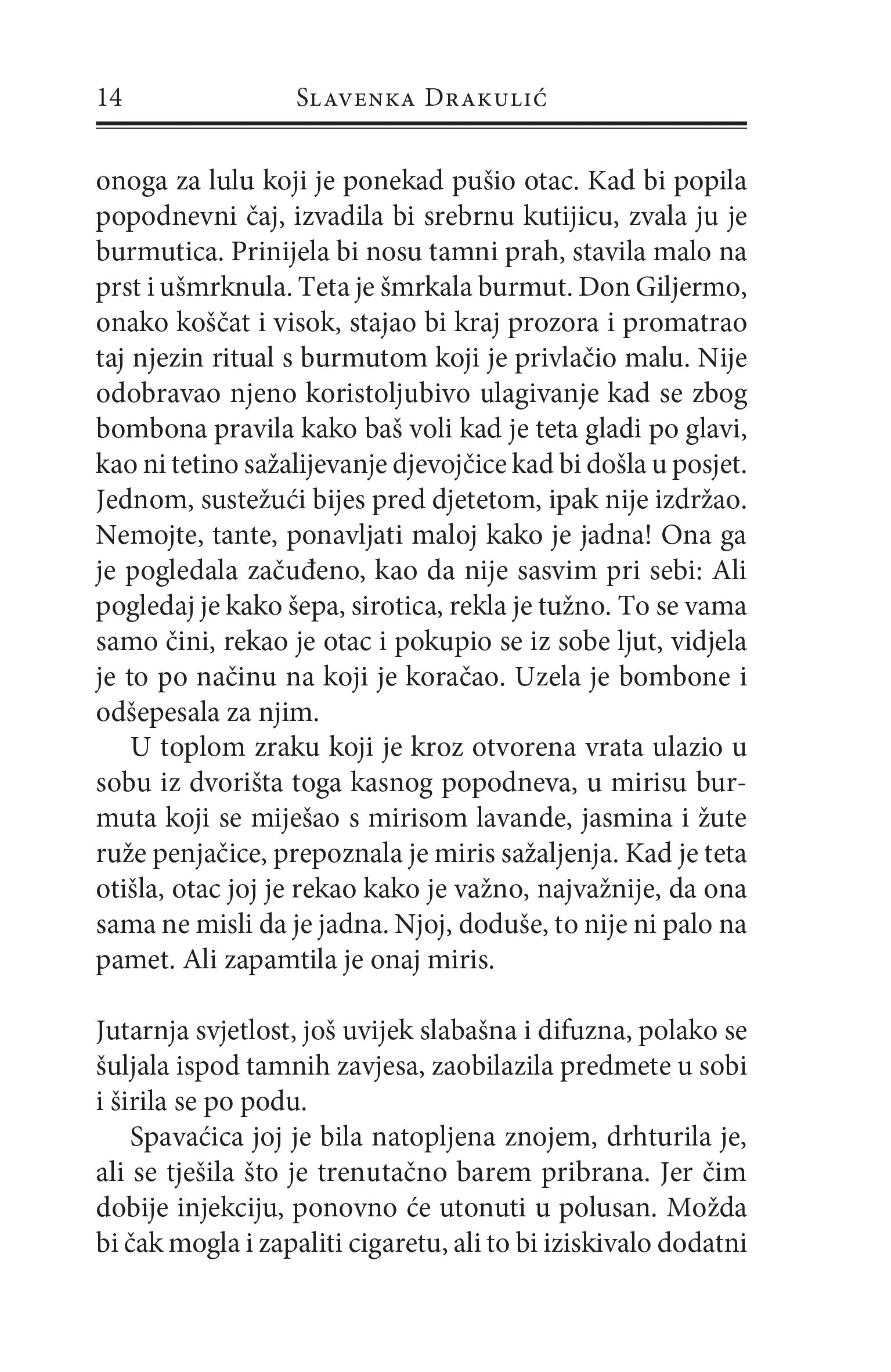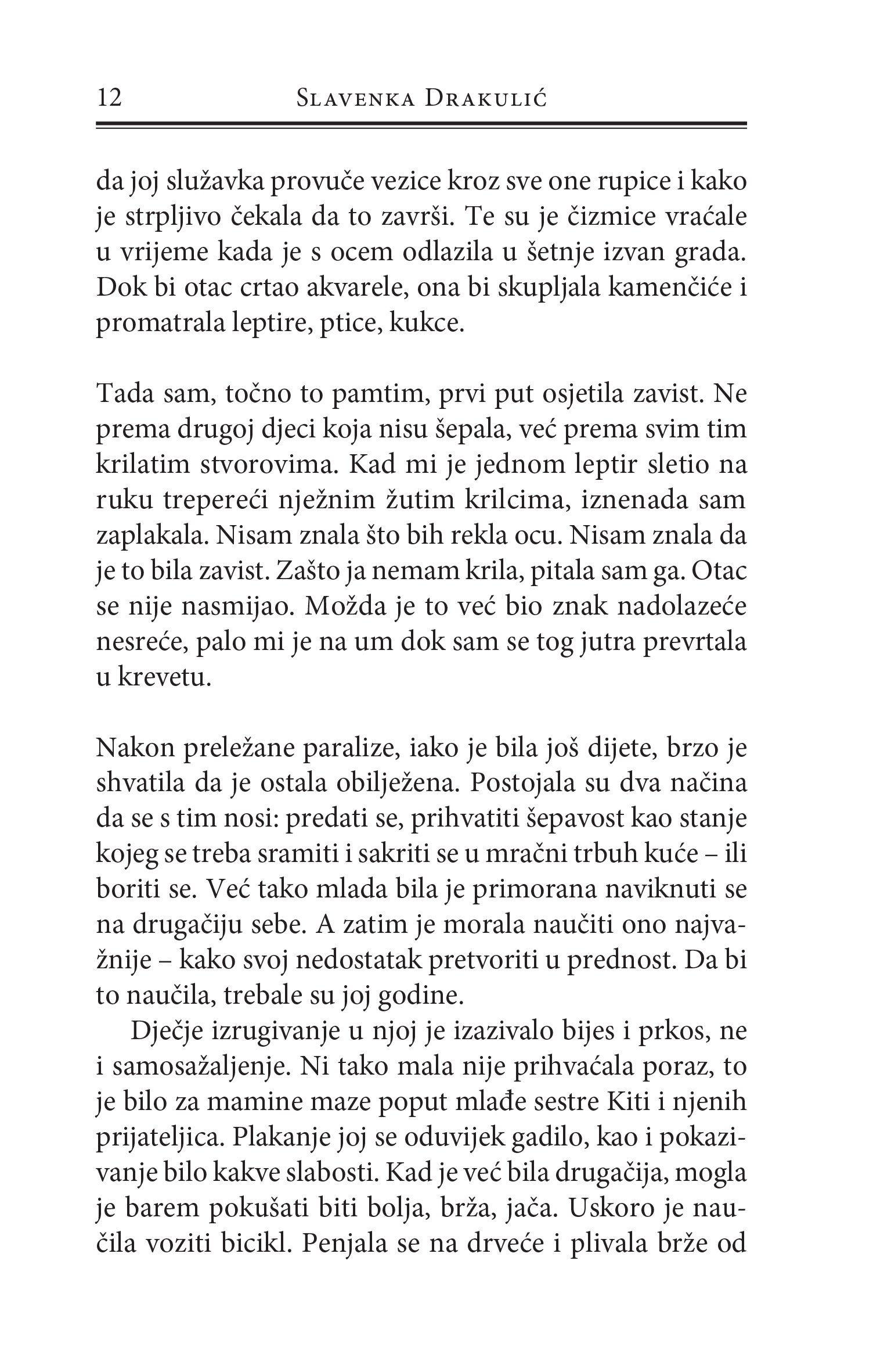 Frida Kalo – slikarka, buntovnica, simbol snage i patnje. Ovaj roman istražuje njenu fizičku i emotivnu bol, ljubav koja ju je uništavala i stvaranje kao jedini način preživljavanja. Slavenka Drakulić maestralno dočarava život Fride kroz suptilne emocije, intimne scene i snažne slike koje ostaju urezane u sećanju čitaoca.